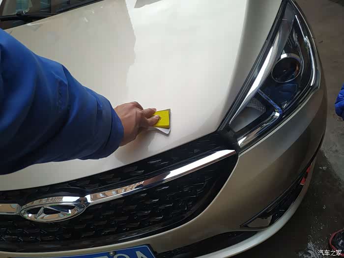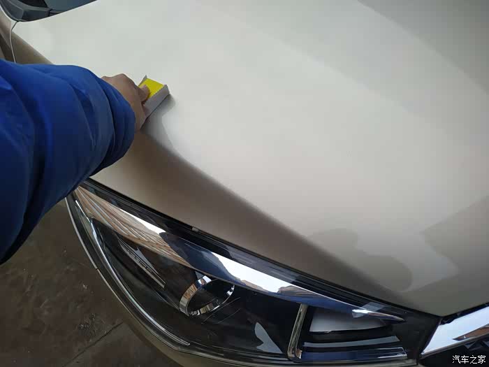先从前机盖开始涂抹。