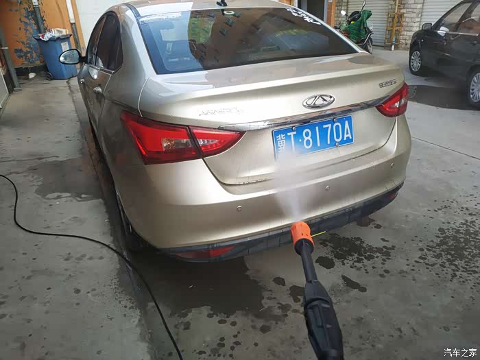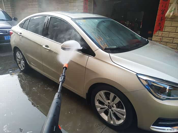 其实用洗车机冲洗,主要是为了把粘在车上的细小颗粒冲掉。