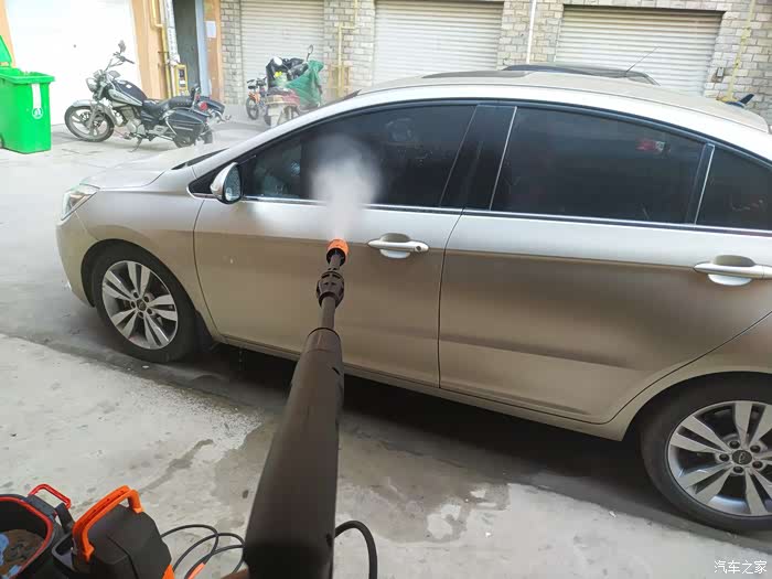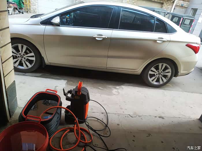 准备两桶水,洗车机的安装也是非常方便的。