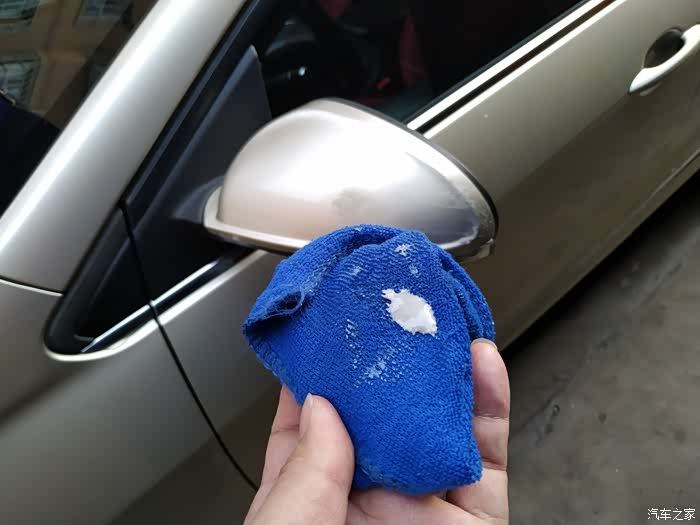 后视镜年前会车的时候,跟人家的后视镜发生过剐蹭,蹭上了点黑漆,用增光剂就可以清除掉。