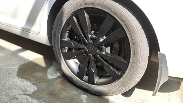 洗完轮毂之后擦干晾干,然后找扑克牌沿着轮胎边的缝隙插上一圈,这样防止喷膜的时候喷到轮胎。怕有腐蚀性!对轮胎有所侵蚀。