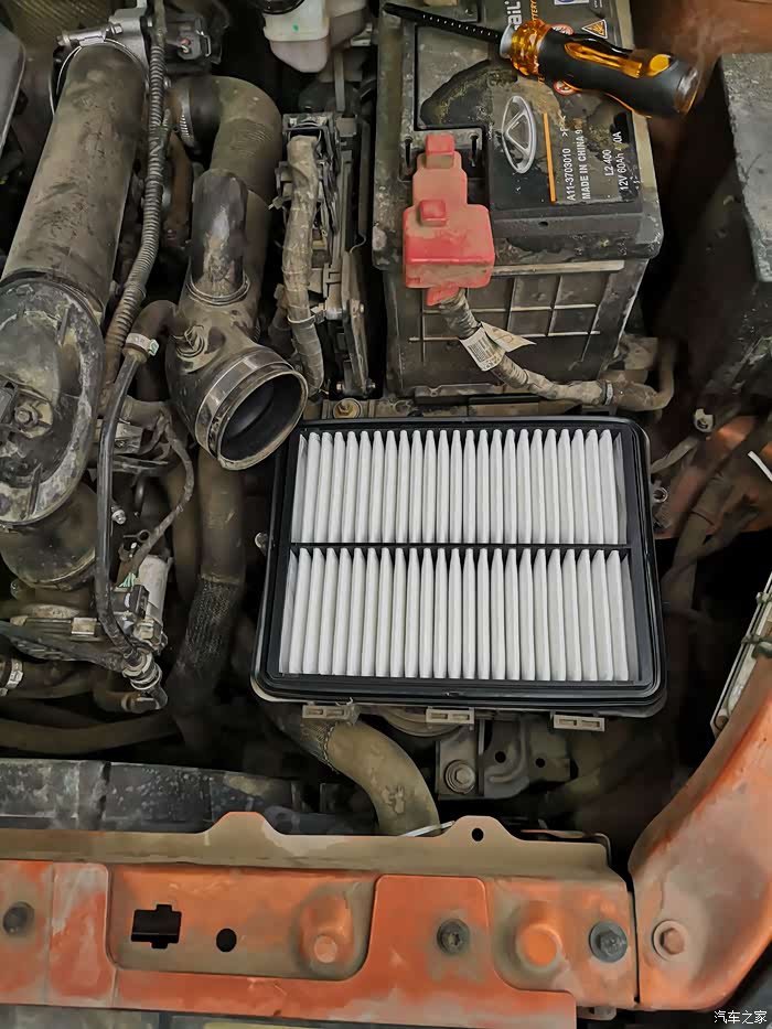 试想一下:要是没有这个口罩,发动机在那边裸奔,就像是我们张大嘴巴在沙尘暴漩涡里疯狂地呼吸,没多久鼻子就堵了,鼻子一堵,搞不好就会把自己给闷死。换口罩所需工具材料很简单:一个中号十字螺丝刀。新口罩,施工开始。