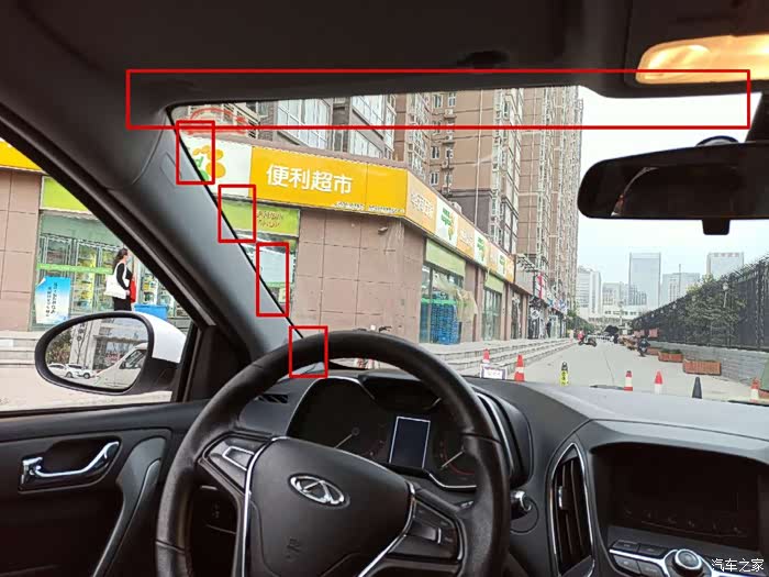 再就是确定行车记录仪的安装位置,前挡风玻璃后视镜的右侧,这是大家比较统一的位置。我选择最靠近后视镜的位置,这是最居中的位置,拍摄位置算是最佳。也为ETC、年检标识留出位置。一定要用静电贴,以防损坏前档贴膜。