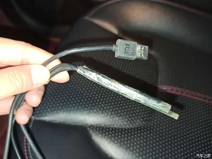 在从这个侧面裸漏绕过来就基本走完了。整个过程没有打孔开槽,对原车没有任何破坏。注意到没加装完我还有一个USB输出口的富余,一点也不影响我手机充电了。旁边插u盘的数据口我插了一个蓝牙的连接器这样可以在线听音,直接接电话。