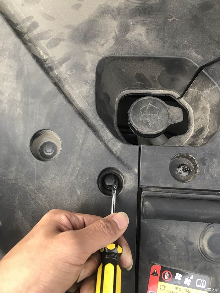 第一种方法从前舱着手更换。先将前舱打开