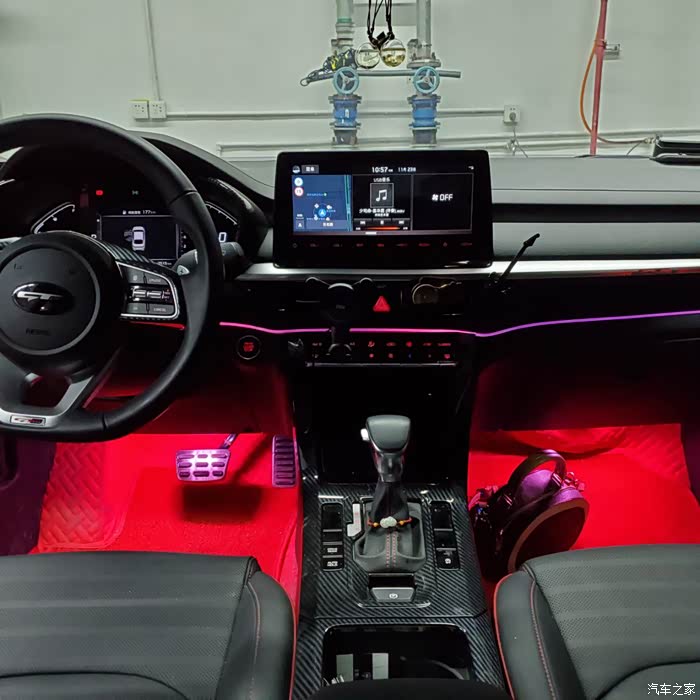 原车自带的6色氛围灯,外加我自己改装的氛围灯与脚窝灯,视觉效果超级棒~晚上带个小姐姐非常有面子,哈哈哈哈!
