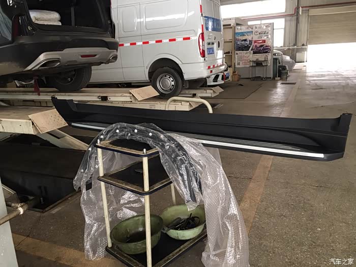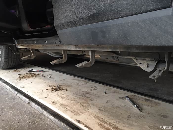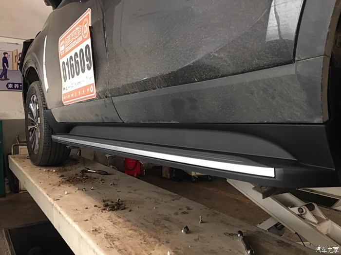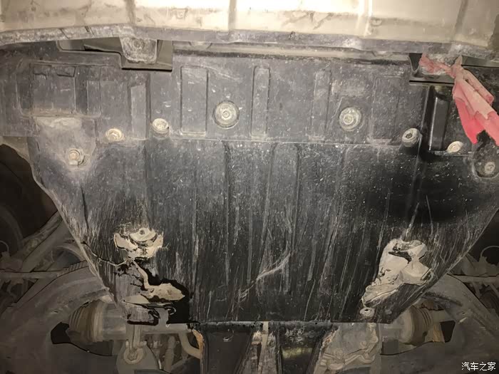 趁着师傅安装踏板,我钻车下面看看车况,塑料护板已伤痕累累,过两天更换成铁的
