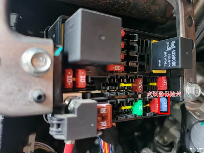 前天因为一时疏忽,晚上忘记给手机充电,第二天上午手机电量就告警了,20%以下的红灯闪得触目惊心,让强迫症完全无法忍受。幸好车上有车充,顺手连上了充电线,然而,电量还在一点点往下降,低头一看,车充插头上的灯没亮,心里暗暗叫苦,估计又是保险丝烧了。之前有次用气泵给轮胎充电已经烧过一次了,只不过那次是去店里保养的时候让维修的师傅顺便更换了。这次没办法,只能自己动手了。