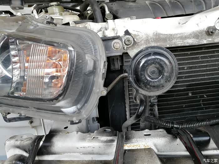 改了喇叭位置,大灯旁把螺丝孔扩大用螺丝拧上。