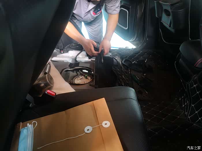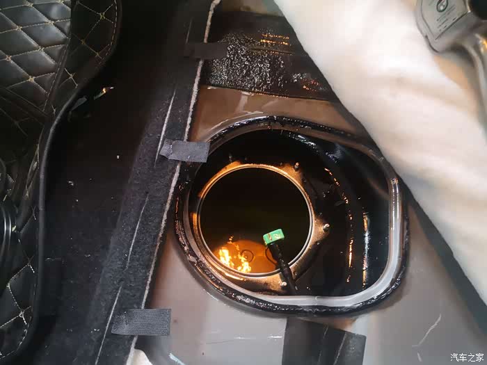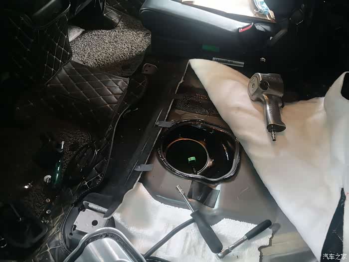 掀起隔音棉,准备卸油箱盖子了。