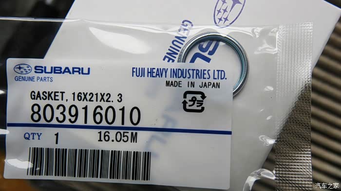 这是一个小配件,机油滤芯的垫圈,还是日本本土制造的。
