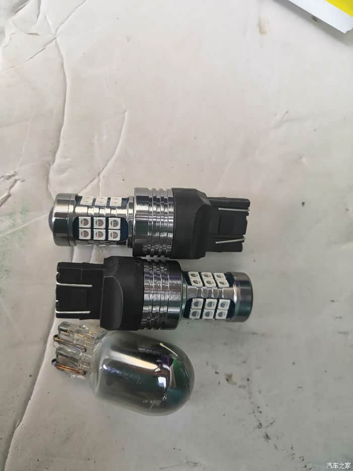 上面的新LED刹车灯,下面是旧灯泡雾灯,两个灯可以互换,T20双丝的。