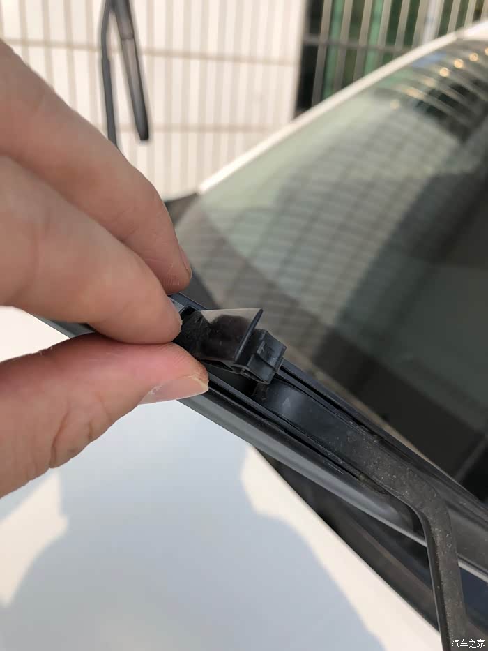 取出来后,就可以把新的雨刮胶条安装上去了。