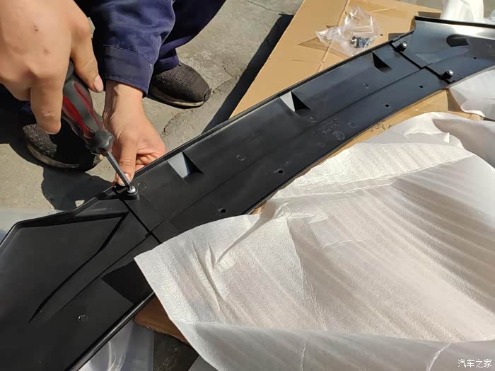 正是开始上车安装了,需要两个人托着,对好位置。