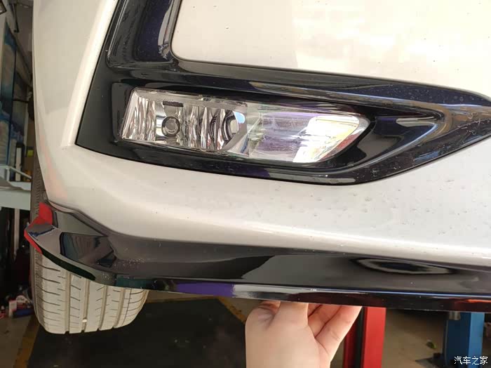 除了找安装点之外,也需要比划比划和原车前保杠配合得怎么样。
