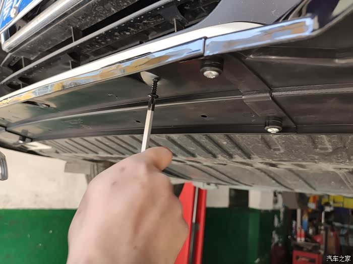 确定没有问题之后就开始松掉原车的一些安装螺栓和螺钉之类的,这个前铲是无损安装,使用的都是原车上本来就有的一些安装点。