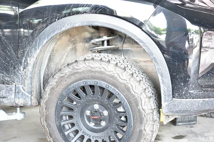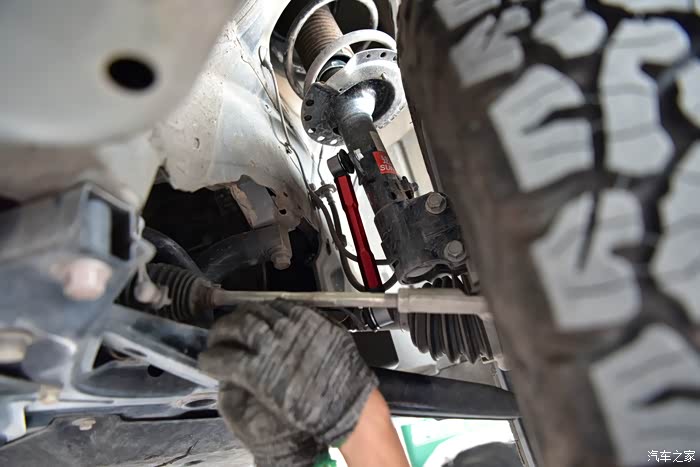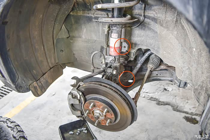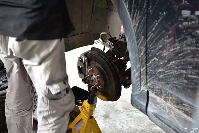 这些问题不是现在该去考虑的,赶紧换上才是最主要的。老规矩,第一件事就是升车,然后拆轮毂。因为最近一直在下雨,所以车身上的泥点子大家就当没有看见吧。