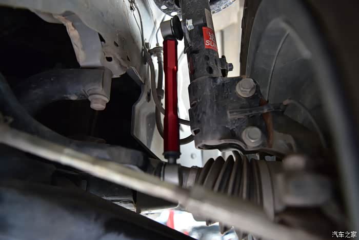 在安装之前两边的高度都进行了比对,一致性方面问题不大。真正要进行测试的其实是通过颠簸路段时的表现,如果还有异响的话,说明高度还要重新进行调整。