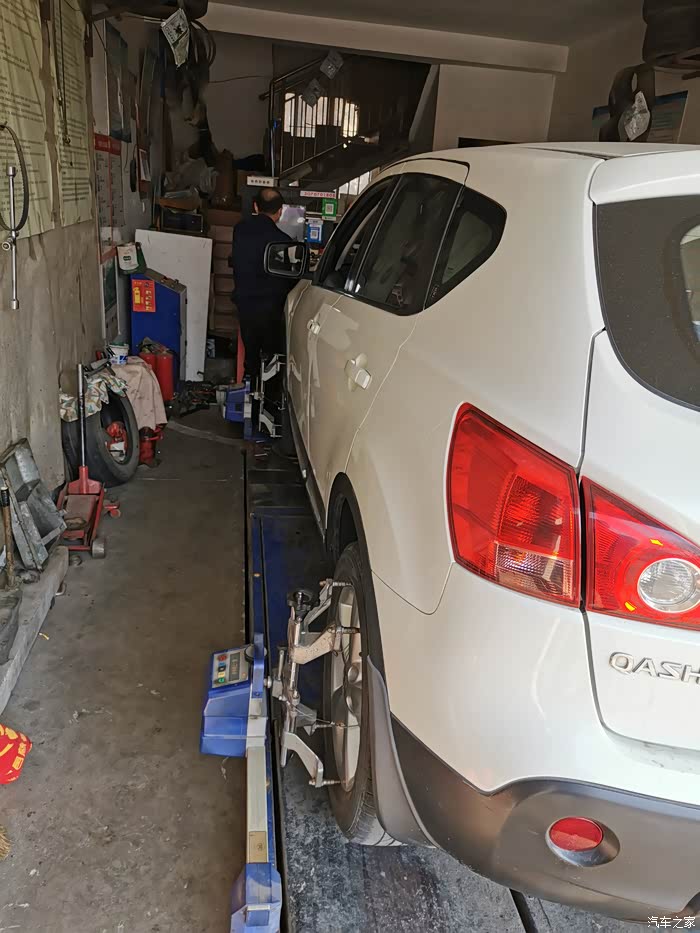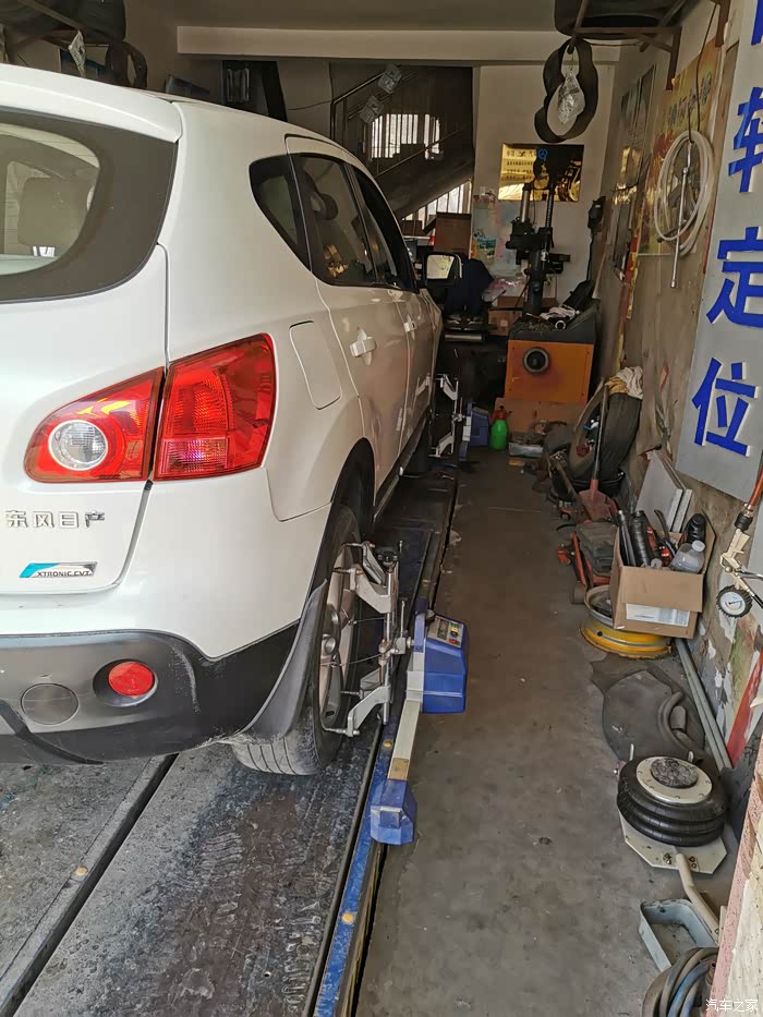 上午换好拉杆球头后,下午来轮胎店四轮定位,老板很热情,先问明定位原因,换了拉杆必须要定位。