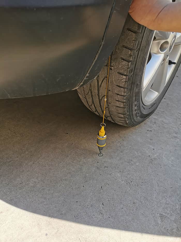 用线坠测量了一下前束值,轮前宽度1622mm,轮后宽度1623mm,前束1mm。这个只是近似测量,用到的是线坠和米尺,为了保证换后四轮数据准确,还需要进行四轮定位。