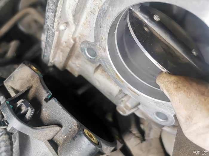 肉眼可见的积碳,在节气门那个翻板哪里