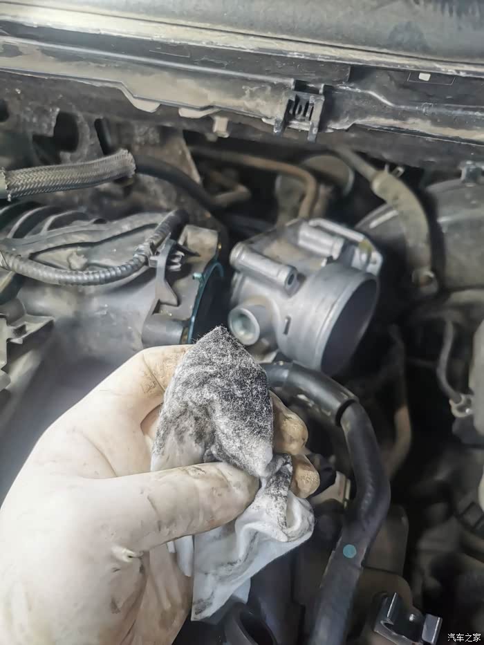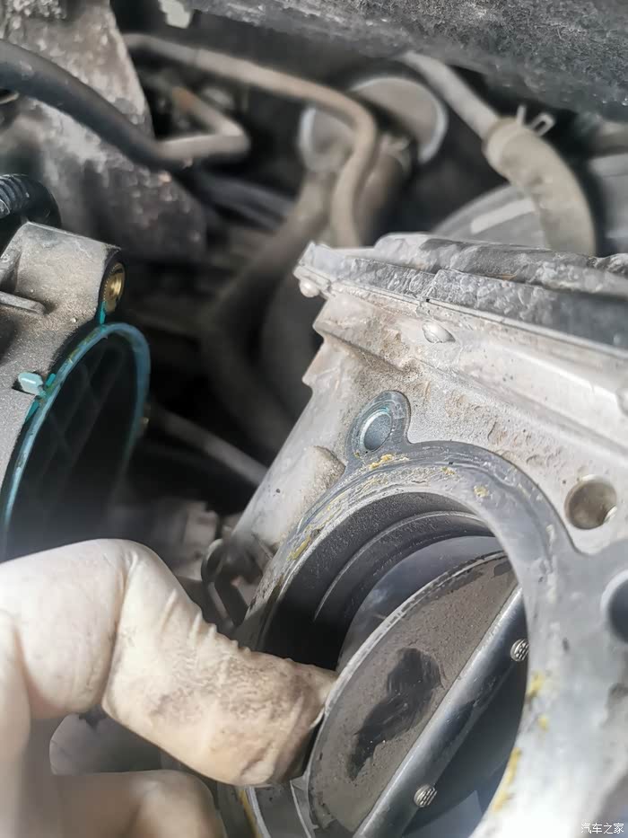 ,节气门固定螺丝拆下来后,两根水管不要去拆,就在上面清洗就可以的,因为拆水管还得放防冻液,还得排空气。