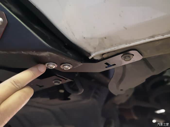 L型支架把原厂杠固定在竞技杠上,避免松动
