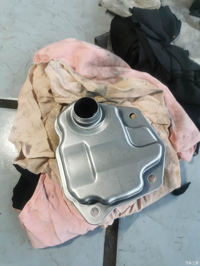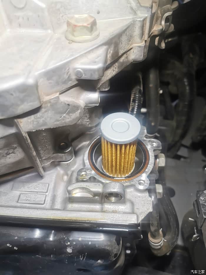 这是变速箱外置纸滤芯,在变速箱散热器下面,四个十号套筒拆掉就可以拿出来,这个滤芯不换,单独换变速箱油没啥意思的。