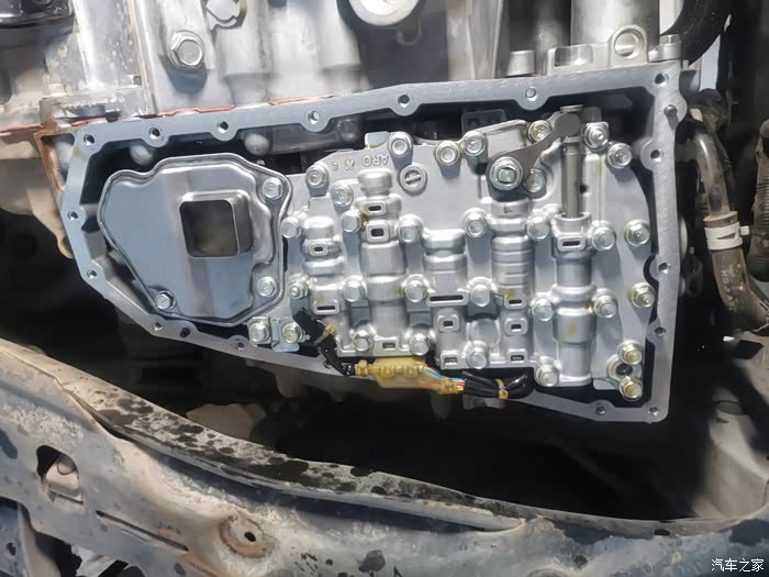 变速箱阀体,后面那个铁滤芯已经拆下来去清洗了,用化油器清洗。