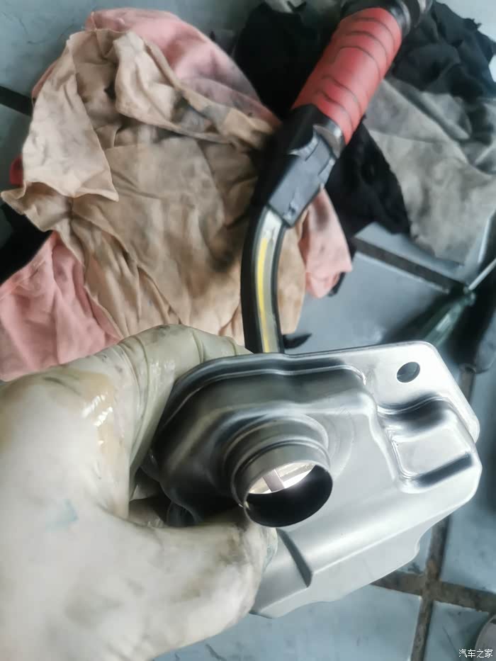 洗干净的,变速箱内置铁滤芯,用手电筒从底下照可以清楚的看到,光透过来。说明已经洗干净了