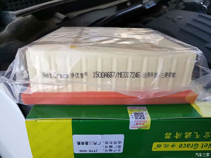 像这样,然后把卡扣的部分扳开,按旧的滤的方向把新的换上去。好了换完了这就是换滤芯的整个过程。结果这个是我想象中换空调滤芯,中间出了点小插曲。我把手扣的外框给扳了下来,扣不回去了。我也不敢用力怕弄坏。于是找了修车铺给按了一下。花了十元,加上买滤芯的50就一共是60。总的来说,奕歌相对于其他同价位车型来说,开了一年了除了油钱,一万多公里,大概5000多的油钱,算下来5毛一公里,是比较省钱的了。车上的用品什么的还没花什么钱,空气滤芯和空调滤芯都是比较好换的。而且保养一次也不是很贵套餐才428,同样带T合资车,换机油机滤,就价格不一样了。