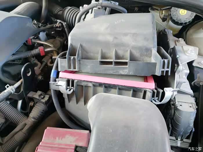 找到空气滤芯位置,就是这个黑色的盒子,把俩个金属卡扣掰开。