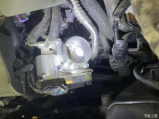 用手擦拭节气门内部可以看到有明显的积碳现象,估计就是这个积碳过多导致的卡滞现象。