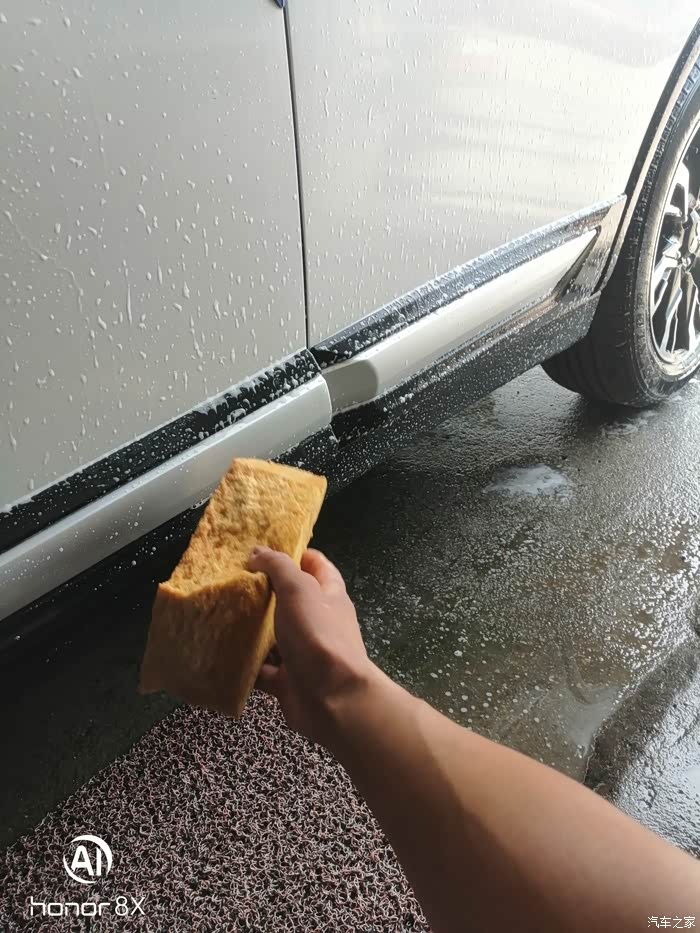 打蜡前第一件事先把车洗干净,车每个缝隙都会夹杂着尘土,小细沙粒