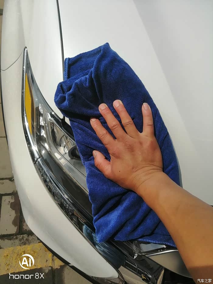 车身把水擦净开始打蜡,用的3M硬蜡,以一字型排列划圈的方式涂蜡,画圈直径十厘米左右就行,横着涂蜡就全横着涂,一定涂匀