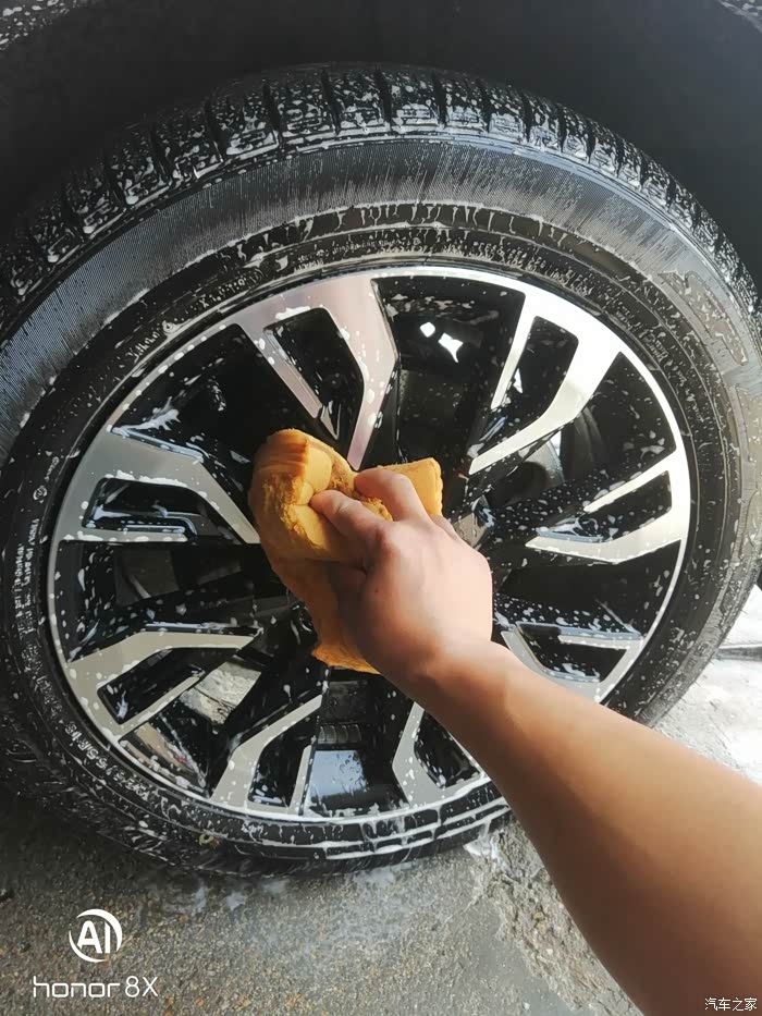 擦洗轮毂,这么漂亮的轮毂一定要冲洗干净