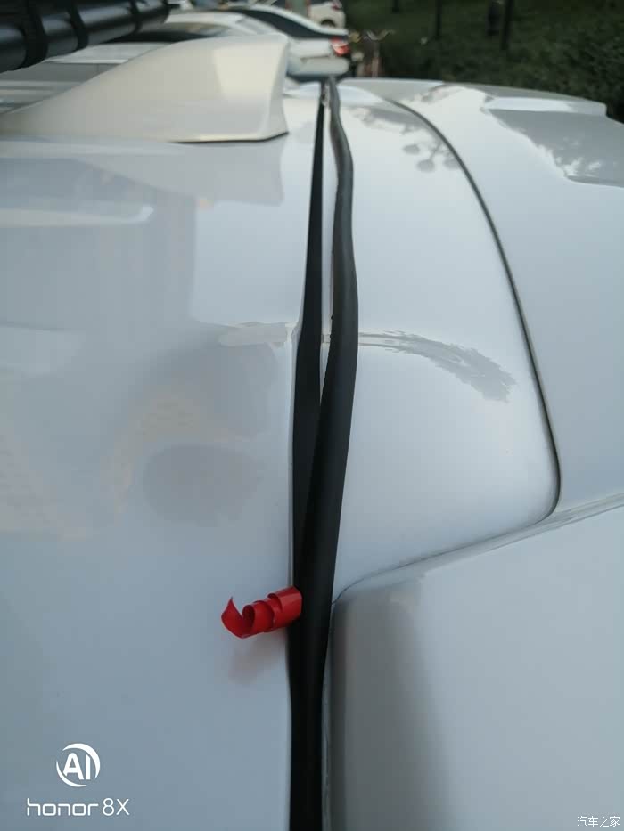 其他都贴完了倒回来在吧尾门上面贴了,剩下的密封条不能浪费,这是用Z型实践贴后尾门上面走个样
