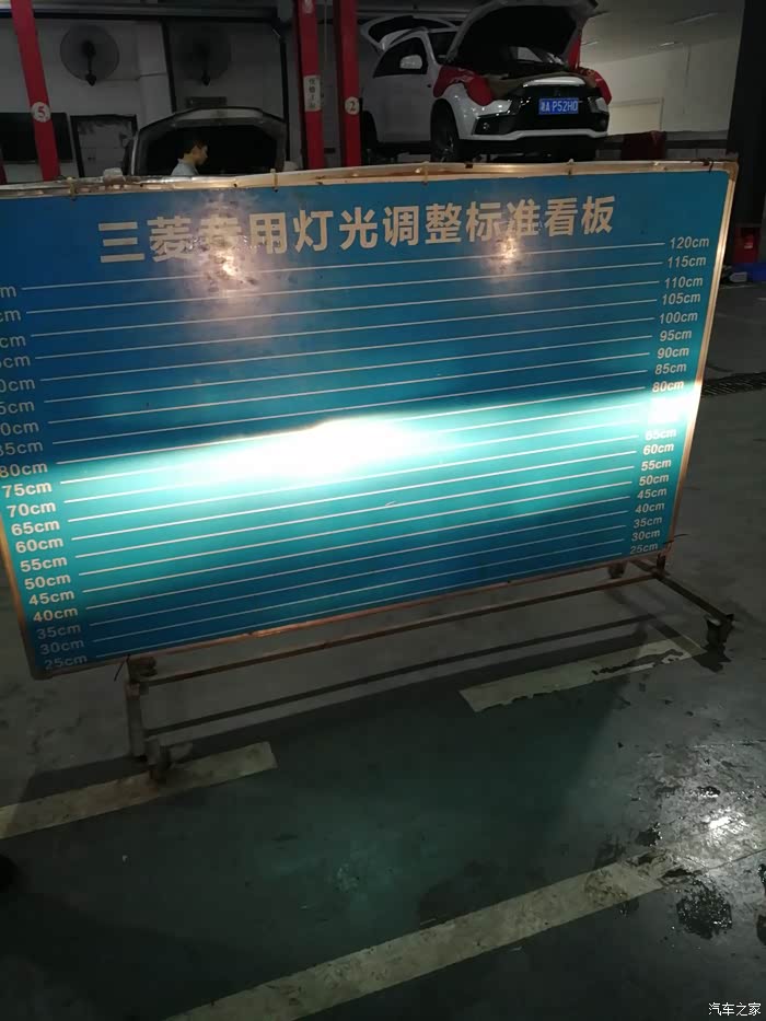 通过调节这个灯光的螺丝,原厂的近光灯高度是75,我自己没有经验,让工作人员调到了85。现在晚上看的更清楚了。