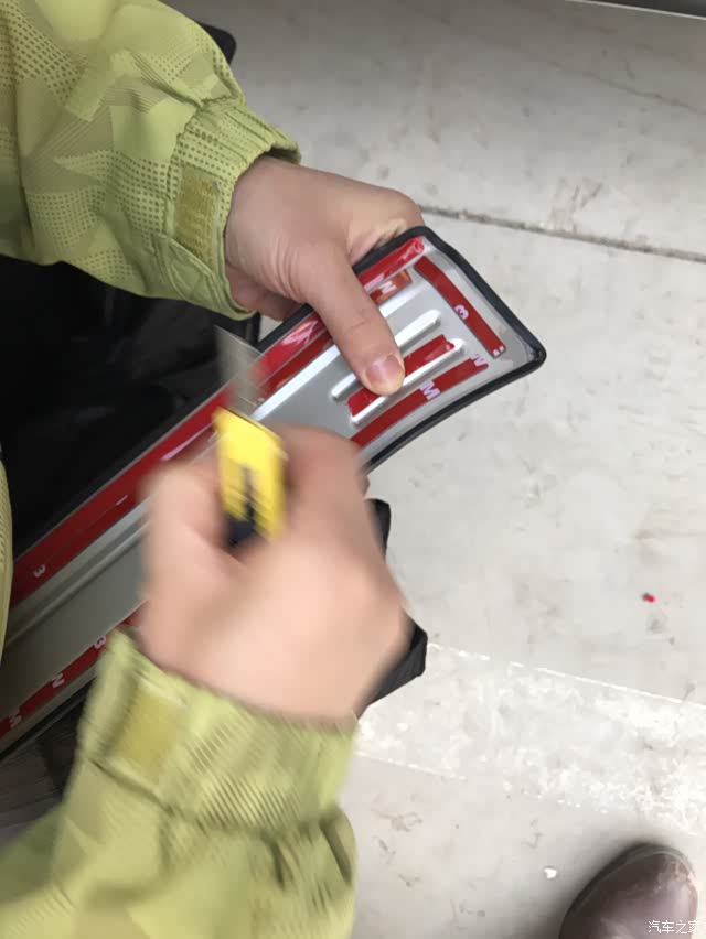 看到许多车友都加装了迎宾踏板,总体感觉很美观。家里有小孩的话,还能有效保护车门门框,所以就在网上买了8件套。买回来之后,安装的过程是不顺利的。8件套到货的时候是4月初,在北方还是春寒料峭,天气稍冷,因为自己没经验,就打算在这稍冷的天气里自己安装,结果可想而知,因为气温低,3M胶无法达到最佳性能,怎么安装的怎么脱落下来,第一次安装以失败告终。