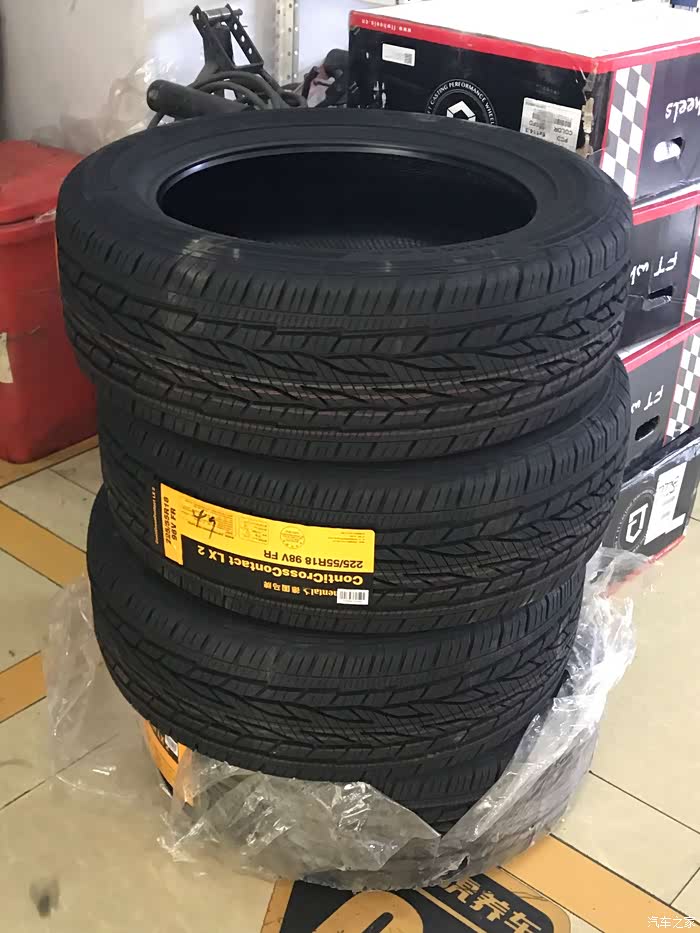 此款轮胎最大的优点是抓地力不错,最大的缺点是容易夹小碎石。目前3年多的轮胎磨碎和老化程度至少还可以再跑1年或万把公里,可3月底去4S保养的时候突然发现右前轮胎壁不知什么时候被划了个口子,为了安全起见决定换胎,经过比较和综合考虑,最终在某虎定马牌CCCLX2(号称8分公路,2分越野,舒适耐磨,全能多面手)。