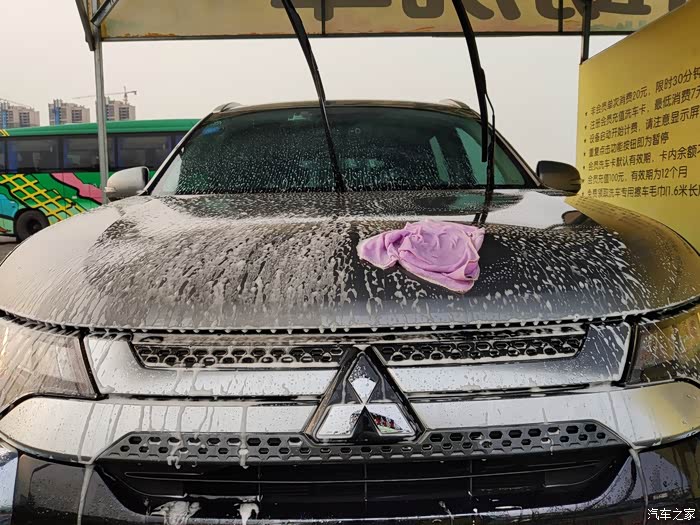 因为时间有限,在自助洗车那里不能停留太久,只能先对机盖部分下手,怎么样?靓丽很多了吧。