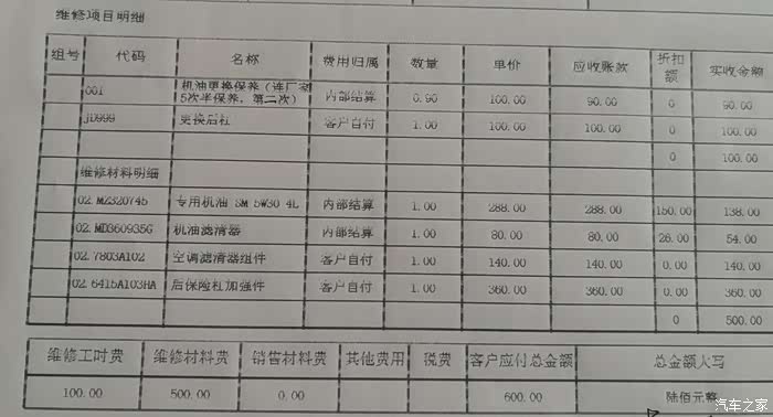 最后上个明细图吧!拆这个后杠工时费算100块,还算很良心的吧!