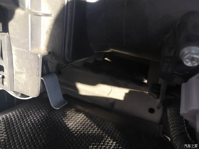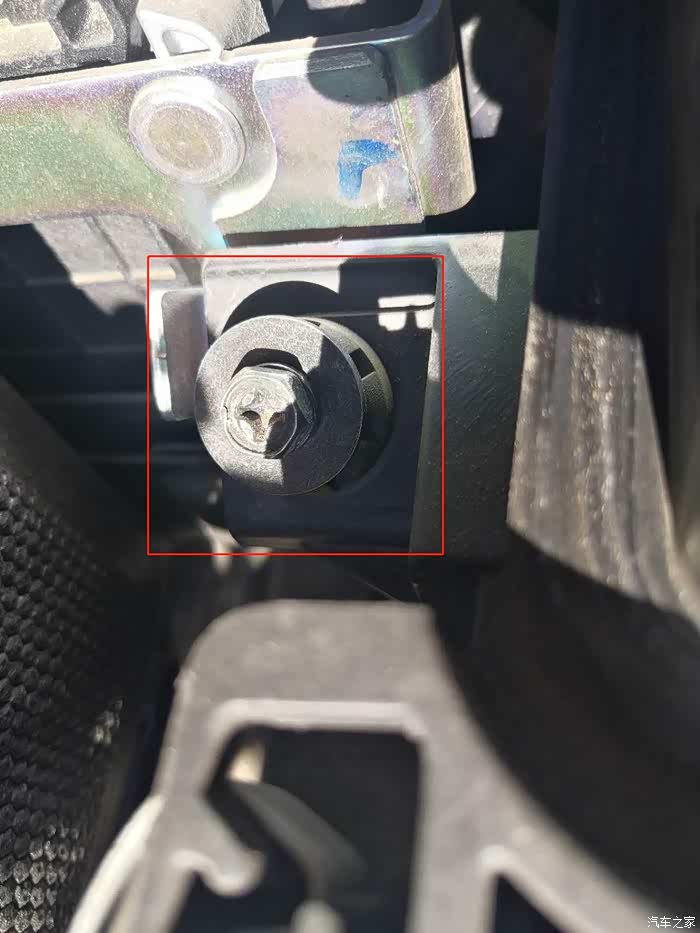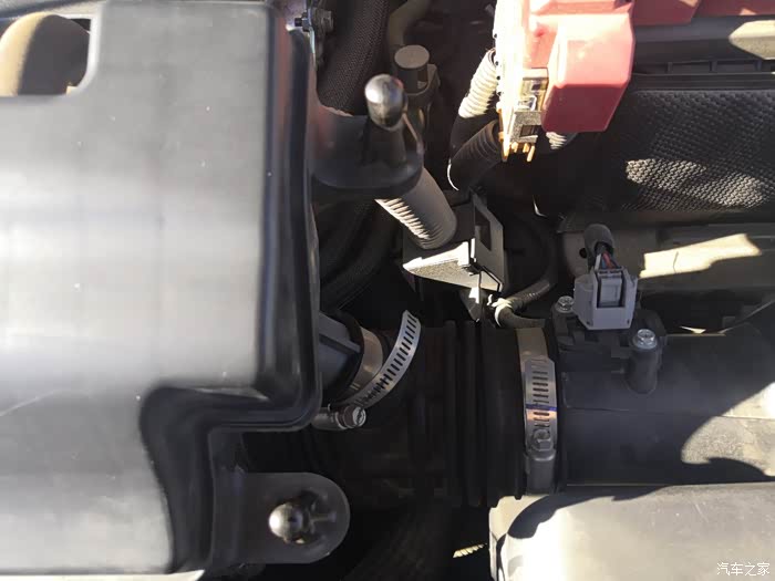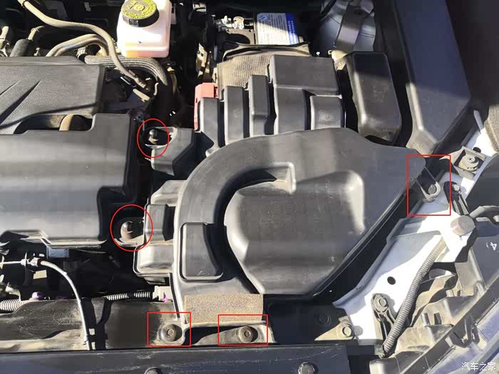 红方块的螺丝需要拧掉。拧掉之后,轻轻向上一提,再打开盒子就可以取出空滤了。否则空间不够取不出来。