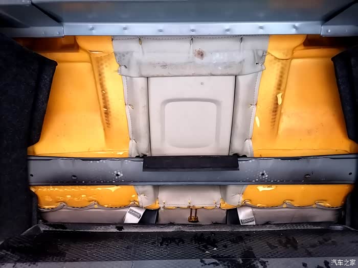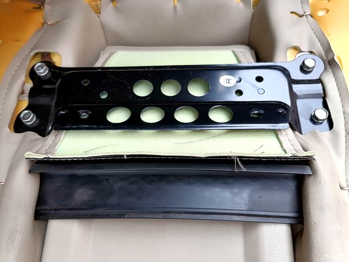 最关键的俩螺丝是在后备箱与后排中间预留口下的两个螺丝。把这俩螺丝拧开,把后靠背往上一抬就下来了