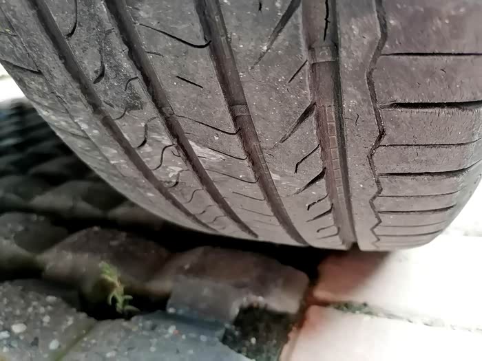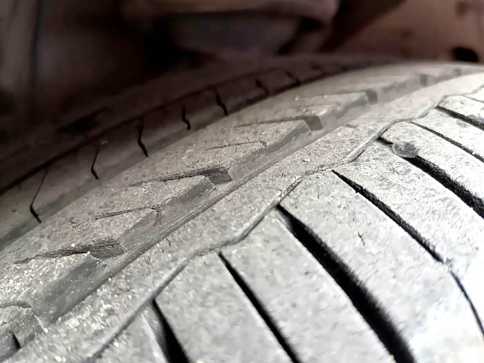 由于常常行走在郊区,泥沙路面较多,特别是石子路也不少,固特异的胎面也有了细微的裂痕和磨损。