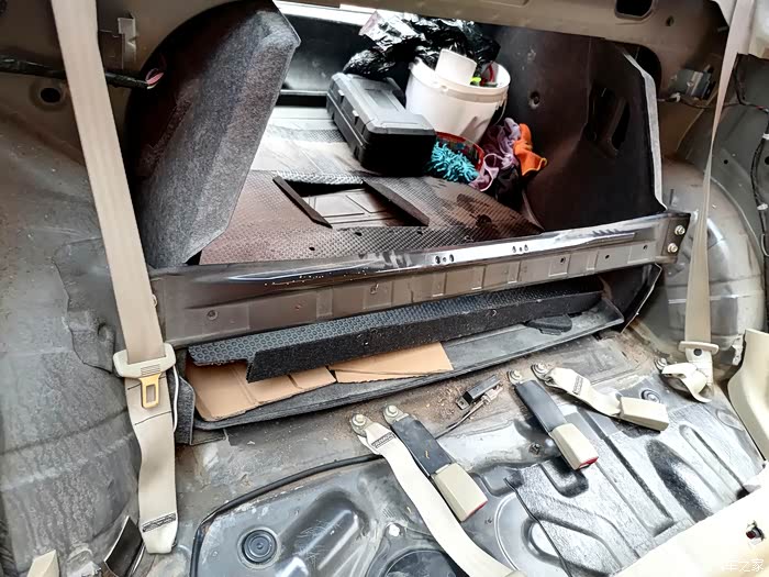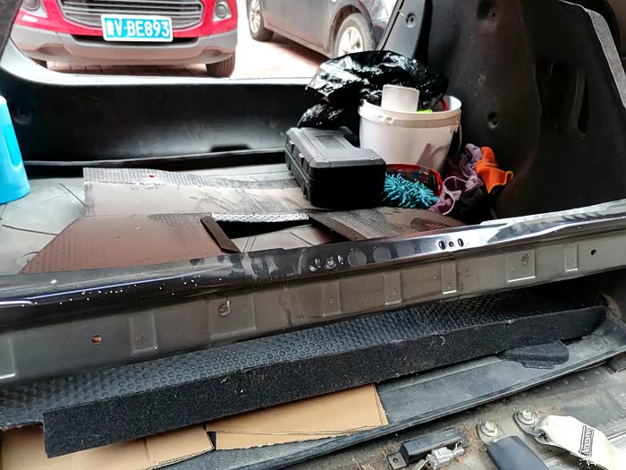 从后备箱拆除保护片片。