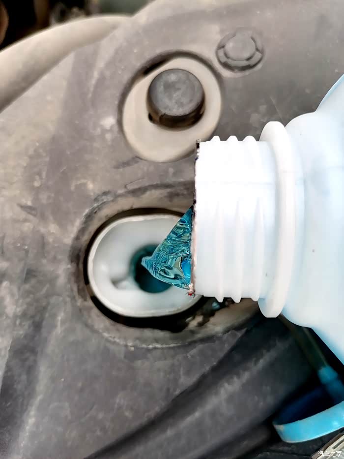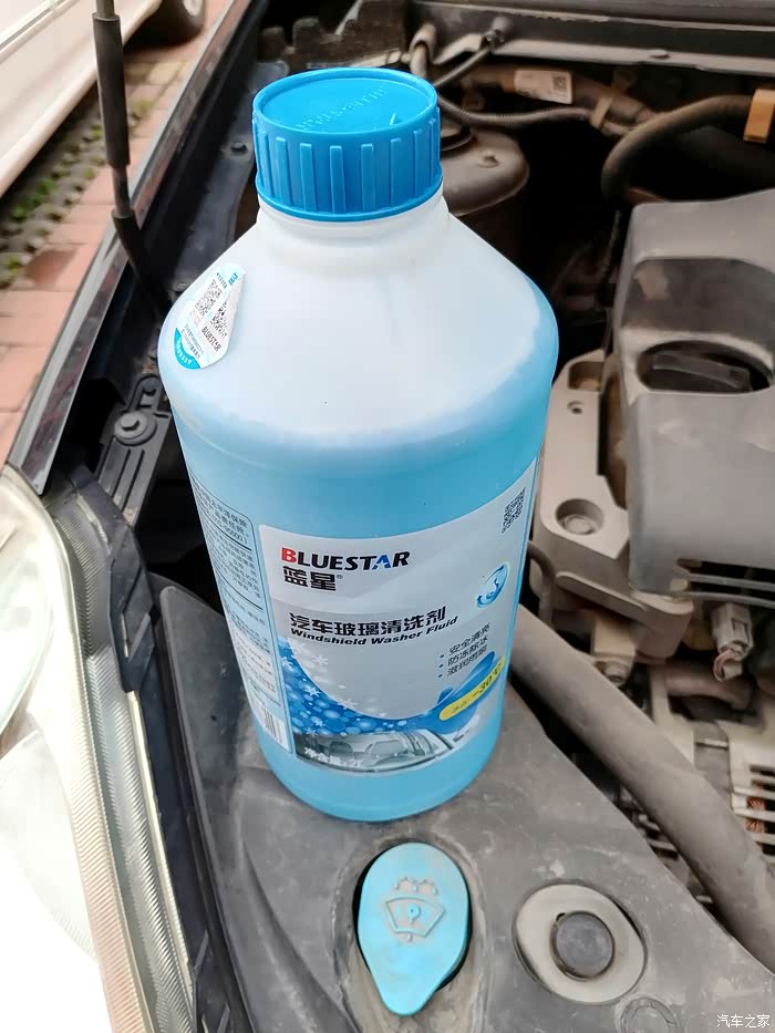 检查了一下,玻璃水不多了,赶紧加点。