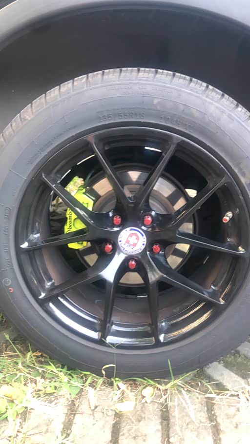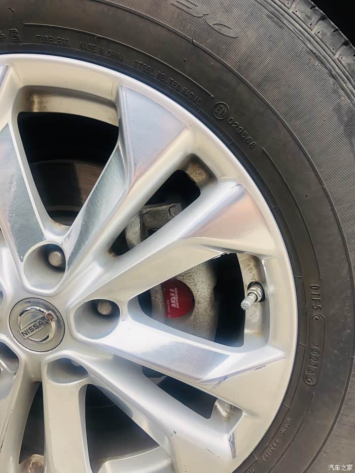 235-55-18!换了这种细辐条的轮毂之后,发现刹车卡钳小小的没有特色,作为家用车给奇骏换个大鲍鱼,个人感觉没意思(其实就是口袋里没钱),没钱也要骚怎么办!卡钳改色!一瓶自喷漆搞定。