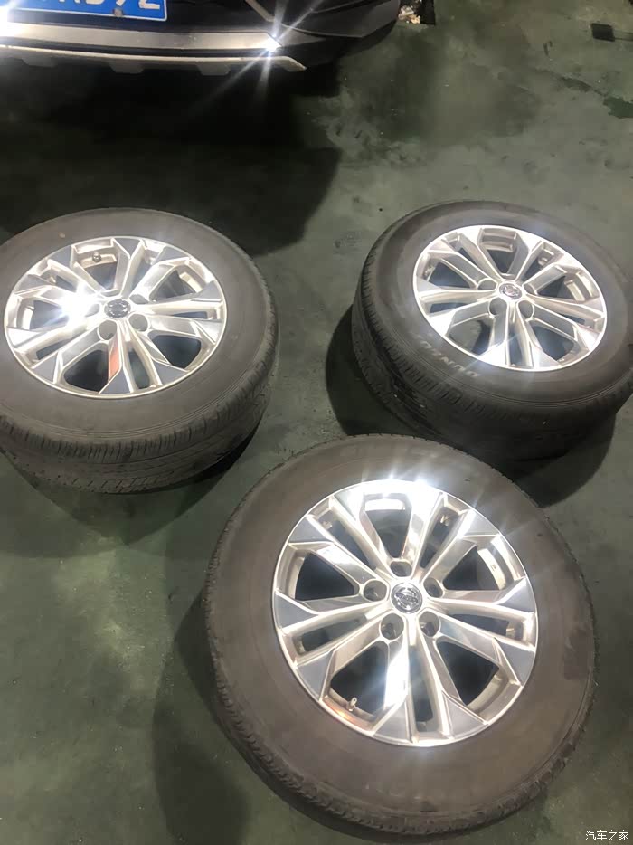 接着是跑了6w多公里的轮胎!感觉是花纹已经比较浅了,加上一直风吹日晒的橡胶制品会老化,所以想着就换,巧的是刚好有一套老的18寸轮毂到了我手里,一不做二不休直接上18寸。