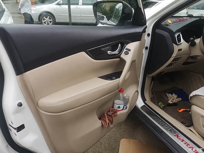 奇骏前车门有方形凸起,看着像鸡肋,据说起减震降噪的作用,因加装的锁车升窗盒固定在上面,只好板上开窗了。